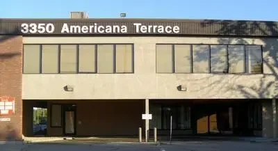 After you turn right onto Americana Terrace turn right and park in the second entrance which goes to the underground lower level parking. Enter the building at the first door and there are seats to wait in. It’s easy to find.